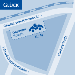 Die Station befindet sich vor dem Grundstück Glückel von Hameln Str. 14, 22765 Hamburg. Parken Sie nur in den cambio Garagenboxen. Die Einfahrt in die Garagenboxen ist nur rückwärts erlaubt! Dies ist eine behördliche Auflage. Informieren Sie unseren Buchungsservice unter 0421-79 466 43, wenn die Zufahrten blockiert sind.