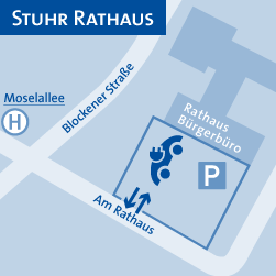 Das Auto befindet sich nach der ersten Durchfahrt, links auf dem Parkplatz vor dem Bürgerbüro.