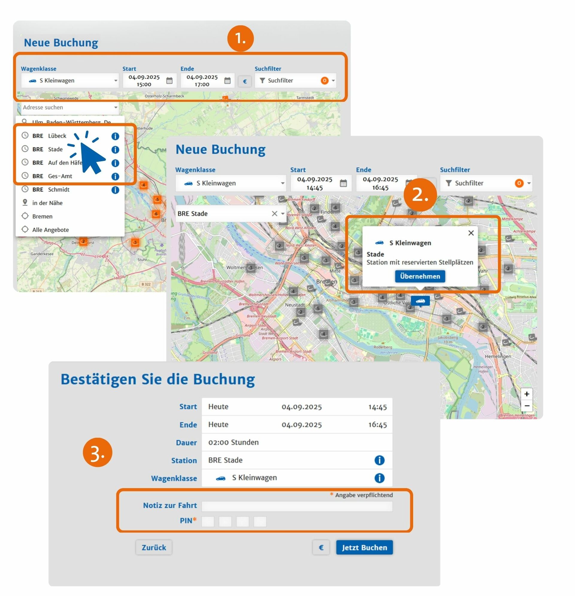 Sie können rund um die Uhr ein Auto buchen. Spontan oder lange im Voraus - genau so, wie es am besten zu Ihren Bedürfnissen passt. Dazu bieten wir drei Möglichkeiten: