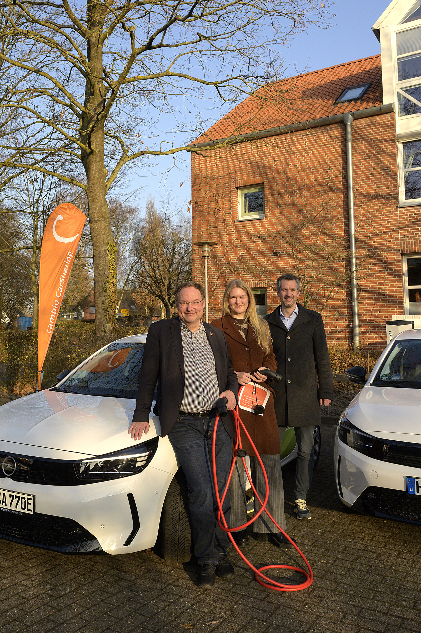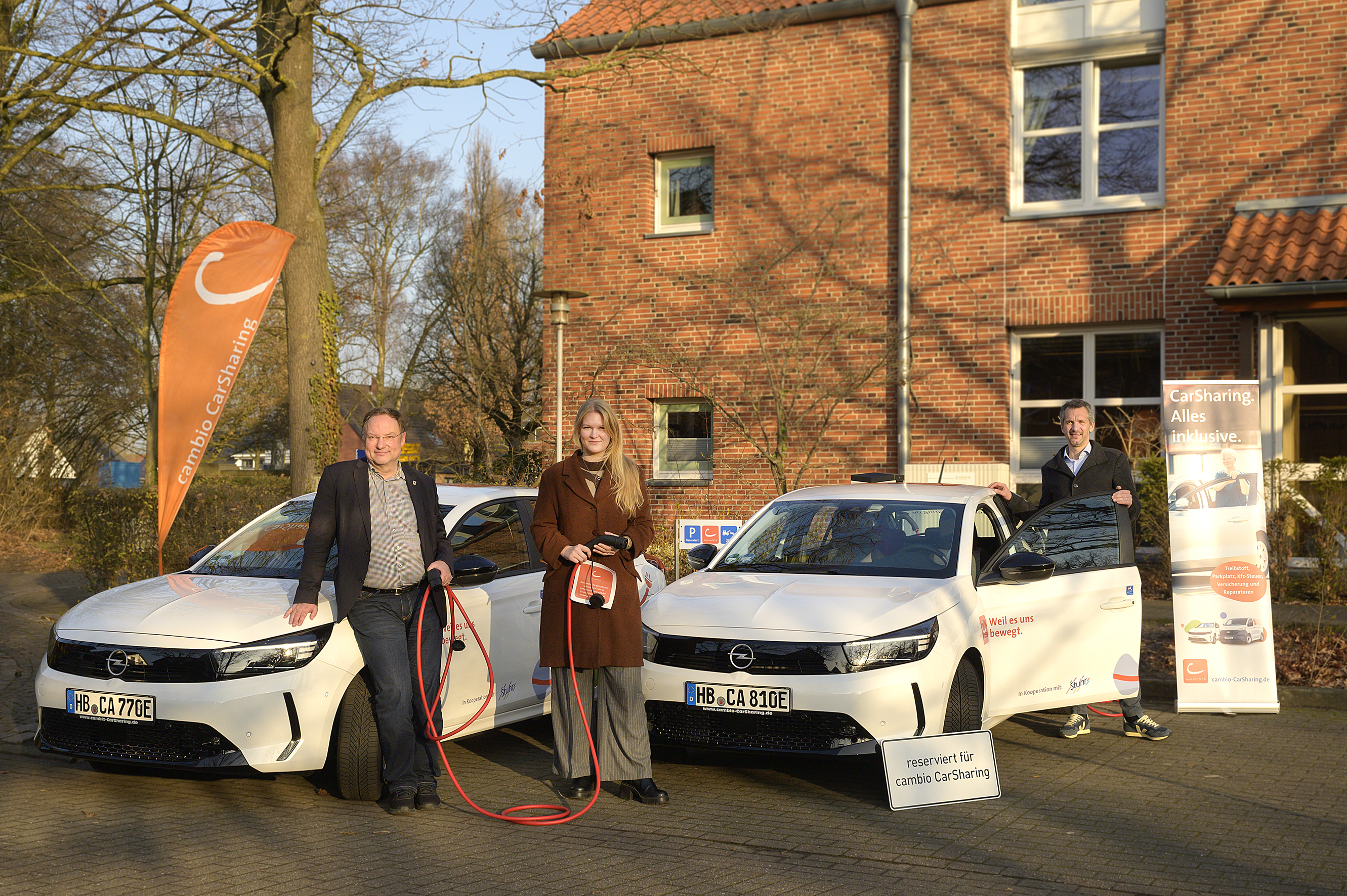 Bremen, 17. Dezember 2025: Zum Jahresende bekommt die Gemeinde Stuhr ein neues Mobilitätsangebot. Direkt am Rathaus stellt cambio CarSharing ab sofort zwei neue Opel Corsa Electric Long Range zur Verfügung. Die E-Autos verfügen über feste Standorte mit eigenen Ladesäulen auf dem Parkplatz vor dem Bürgerbüro des Rathauses. Wie alle Fahrzeuge des CarSharing-Unternehmens in der Region können die Autos in Stuhr über die cambio-App gebucht werden. Einmal angemeldet, stehen den Bürger*innen an rund 170 Stationen in Bremen und Umgebung verschiedene Fahrzeugmodelle rund um die Uhr zur Verfügung.